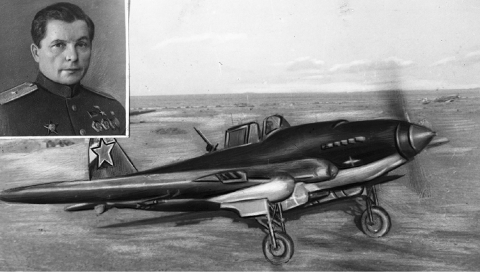 Фотомонтаж: авиаконструктор С.В.Ильюшин; штурмовик Ил-2
