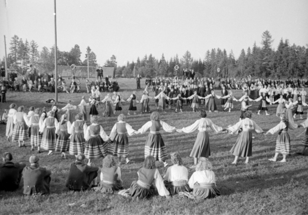 Женский хоровод на гулянье в Нелиярве Тапаского района, по случаю народного праздника "Иванова дня"